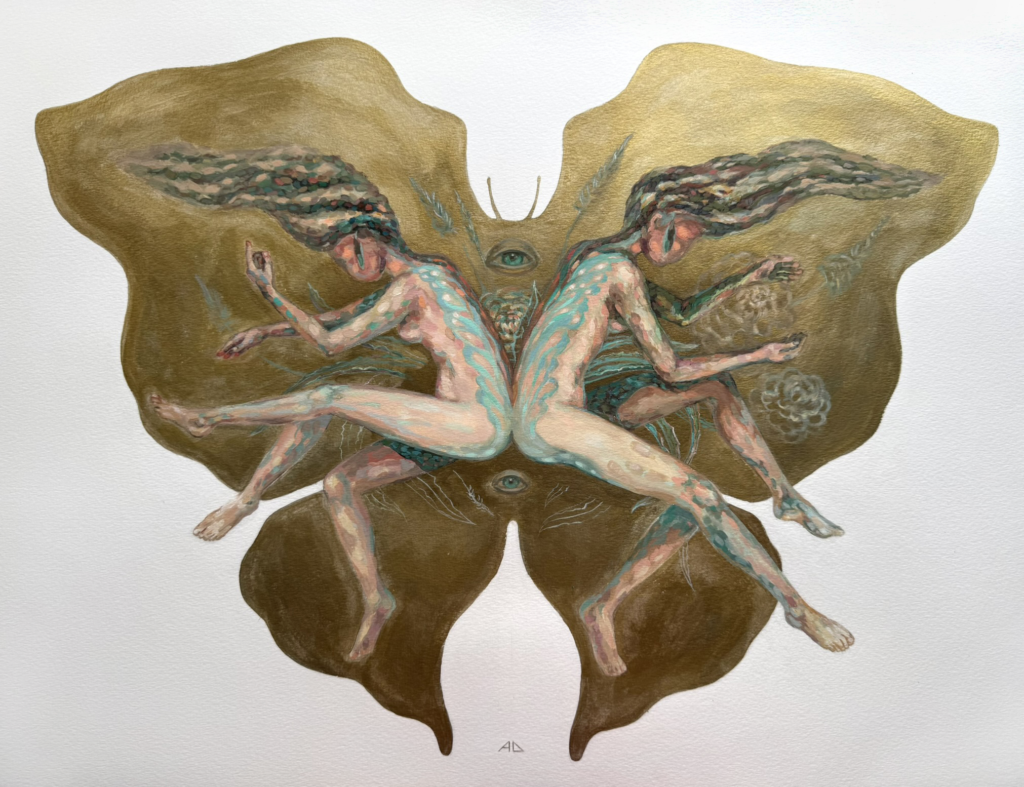 This is one of my most unusual works at the moment. The viewer can immerse himself in a mystical world of dreams, different sensations and symbolism. This painting reflects transformation, rebirth, lightness, inner strength, the search for harmony and balance. And the fusion of different living forms into something supernatural and mystical may take you into magical invisible reality.