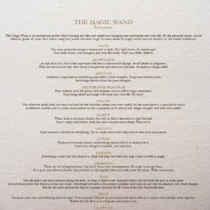 Чарівна паличка – предмет виняткової сили, здатний перетворити думку на дійсність, наповнити життя легкістю й красою. Таємний талісман, що може все!… Все те ж, що і Ви, тільки швидше, могутніше, точніше. Паличка в Ваших руках – це провідник Вашої енергії. The Magic Wand має неповторний дизайн, зроблена з бука і роспісана вручну. Двох ідентичних паличок не існує, в кожну вкладено позитивну енергію і любов. Інструкція по залученню Чарівництва додається. Навіть людині, у якої «все є», може не вистачати само Чарівництва в житті…